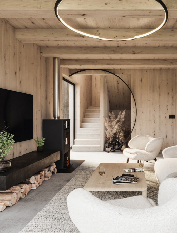 Připravovaný projekt tří moderních apartmánů v horském domě. Dům se nachází na výjimečném místě v těsné blízkosti sjezdovky jednoho z nejlepších ski resortů v regionu. Architektonicky zpracovaná dřevostavba je navržena dle aktuálních trendů severského bydlení ve vysokém standartu. Exteriér domu se vyznačuje například krytinou střechy z falcovaného plechu a fasádním obkladem z tmavého dřeva. V interiéru dominuje převážně pohledové masivní dřevo světlých odstínů a v kombinaci s krbovými kamny dotváří skutečnou horskou atmosféru.