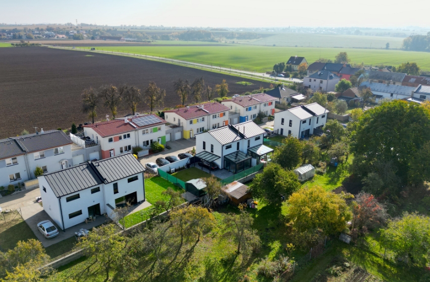 Domy nabízí dispoziční řešení, tří ložnic, obývacího pokoje s kuch. koutem a terasou. Sociální zázemí domu tvoří hlavní koupelna (ve 2.NP) s vanou či sprch. koutem, WC a umyvadlo, v 1.NP pak další samostatné WC a technická místnost. Zast.pl. 45 m², užitná pl. 80 m², celková výměra pozemku 250 m².